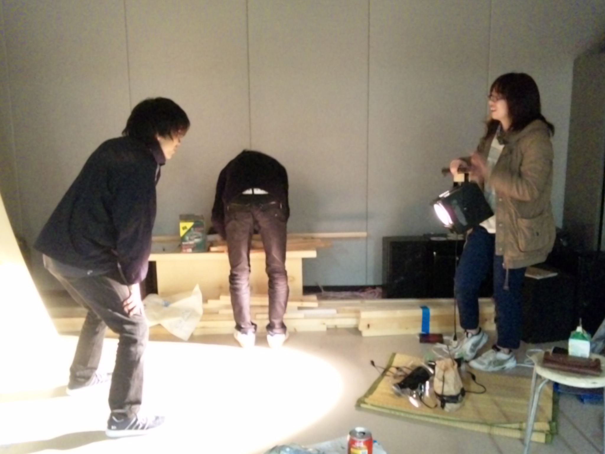 がんばって作った舞台の写真が少ないのは寂しいなと思い、最近稽古場にインスタントカメラを持ち込み、気が向いたときにみんなを被写体に「稽古場で四苦八苦している演研」を写真に納めています。